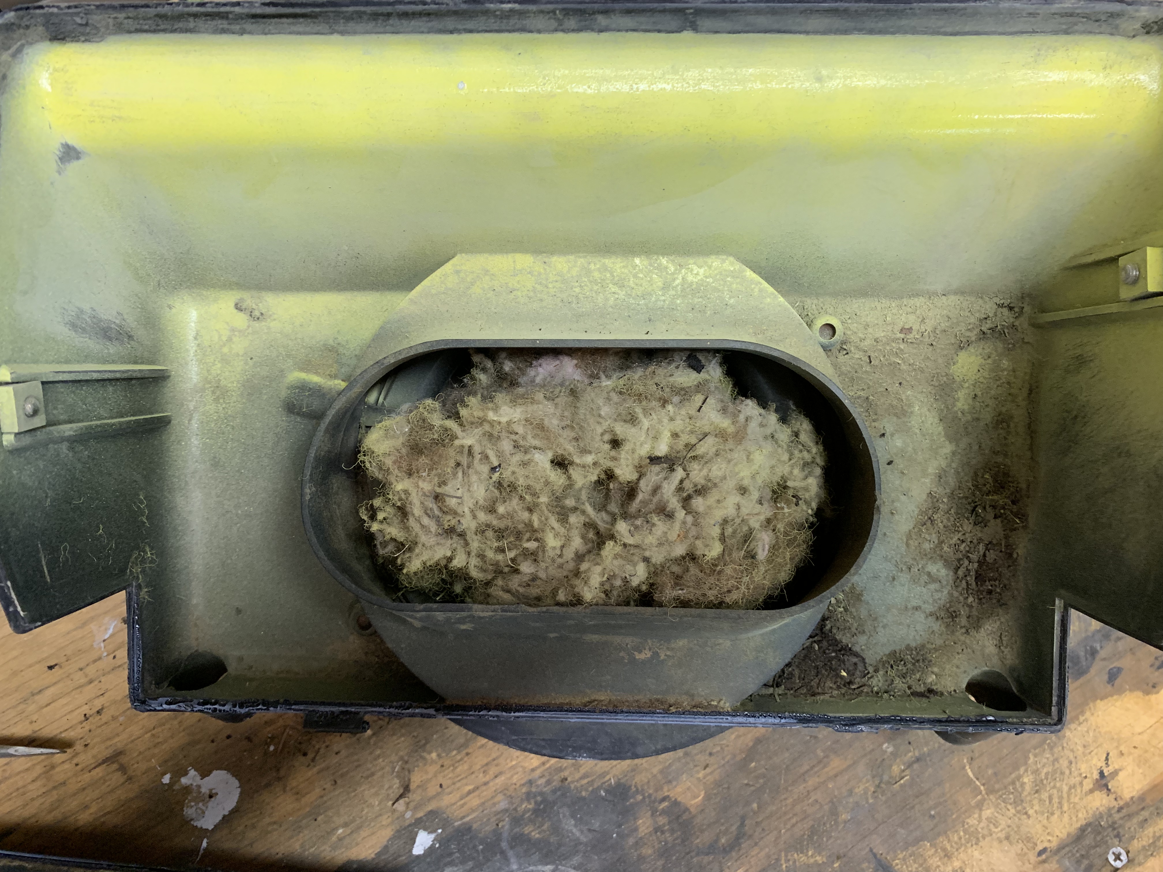 To clean out the fresh air box, (carefully) remove the paper tube on the side and vacuum. |