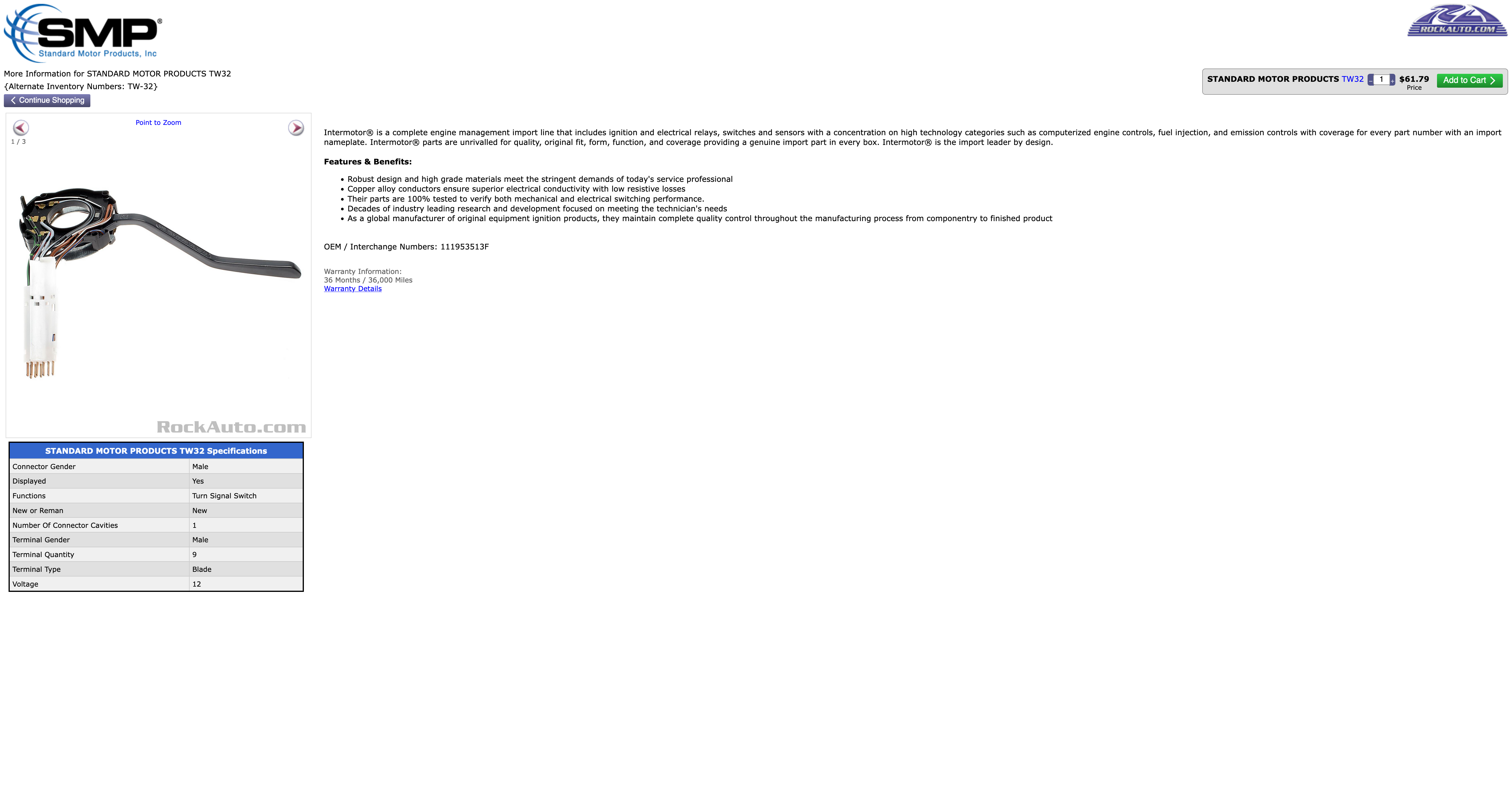 The best one out there is Standard Motor Product TW32. It has been made with correct factory color wires and even says SWF on the wiper arm. Rockauto has them under 75 VW Beetle. Shop around your may find one cheaper Attached thumbnail(s) |