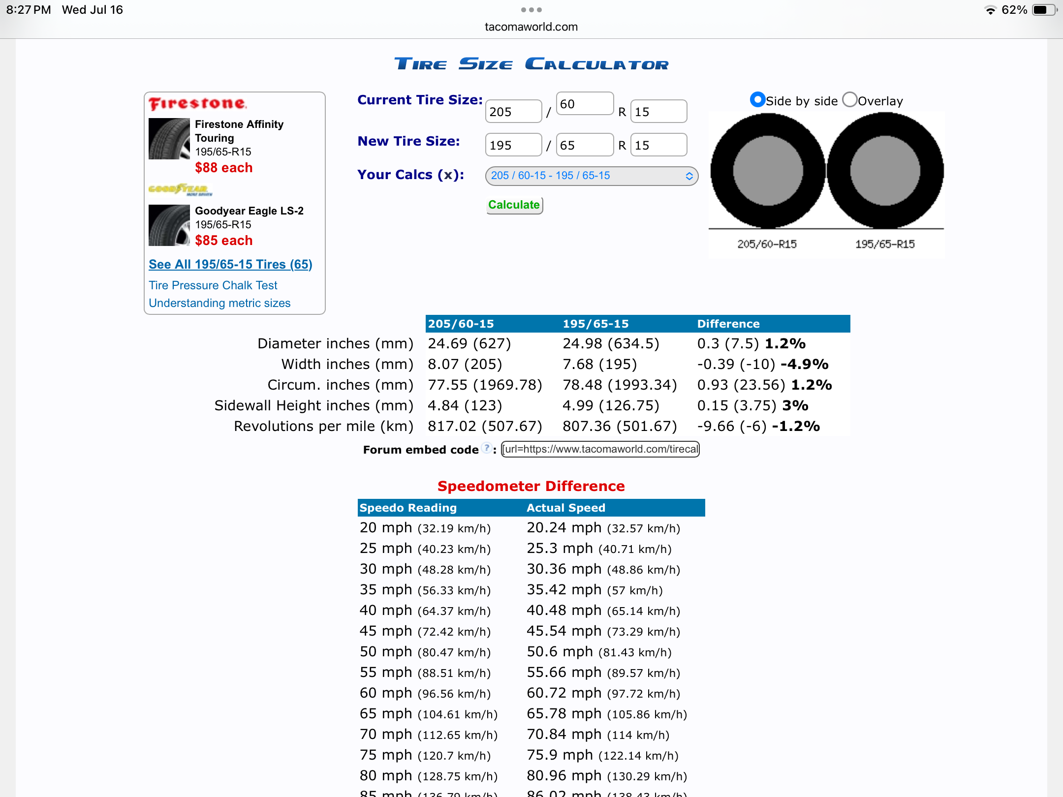195/65/15 for the Creamsicle. Don't laugh but this tire is a good also season H rated tire with 85,000 range. Price is great. They KILL YOU on installation and balance for half the price of the tire. $22+ $3 disposal.